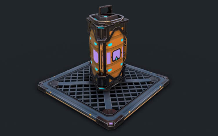 Props are the objects that fill the world. Examples are weapons, vehicles, furniture, loot boxes, etc. Artists may use callout sheets, technical drawings that show a prop from the front, side, and top. They often include “exploded views” to demonstrate how a machine works inside.