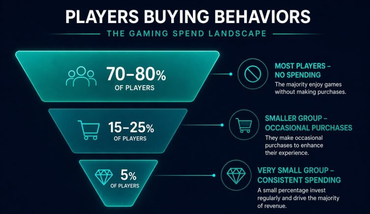 Revenue tends to concentrate in a smaller part of the audience. Not evenly spread. A limited share of players accounts for most of the spending, especially in free-to-play games.