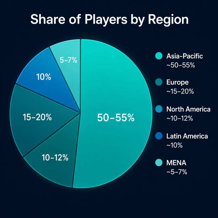 Asia takes up a large part of the audience – roughly half, sometimes more depending on how it’s counted. That’s mostly because of scale. Countries like China and India alone shift the balance, and mobile plays a big role there. For a lot of players, that’s the main way into games.